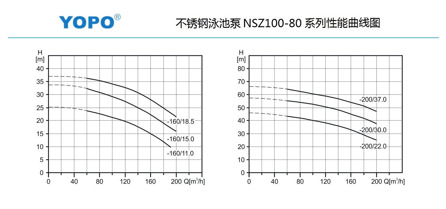 YOPO不锈钢泳池泵NSZ100-80系列性能曲线图