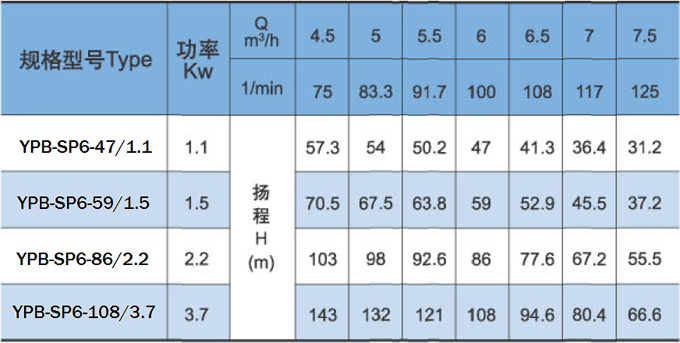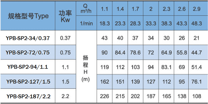YOPO变频恒压静音管中泵供水设备 YPB-SP系列性能参数表